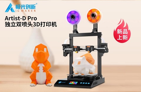 要發揮更多創意和DIY,非它莫屬:Artist-D pro是極光創新產品線中最年輕的一款產品,獨立式雙噴頭結構支持4種打印模式,雙噴頭可搭配出各種耗材結合玩法,支持代碼開源讓創意er盡情打造自己心目中的DIY好助手。快拆噴頭、柔性磁貼、補償調平等多項前沿功能的整合,讓這款機器免除了大部分使用過程中的繁瑣,小白和大神都能玩出花樣。