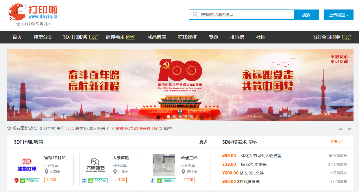 這是一個3D打印資源整合的一個網站,上面涵蓋的內容也很全面,包括打印服務、社區(qū)、學習部落等模塊。
