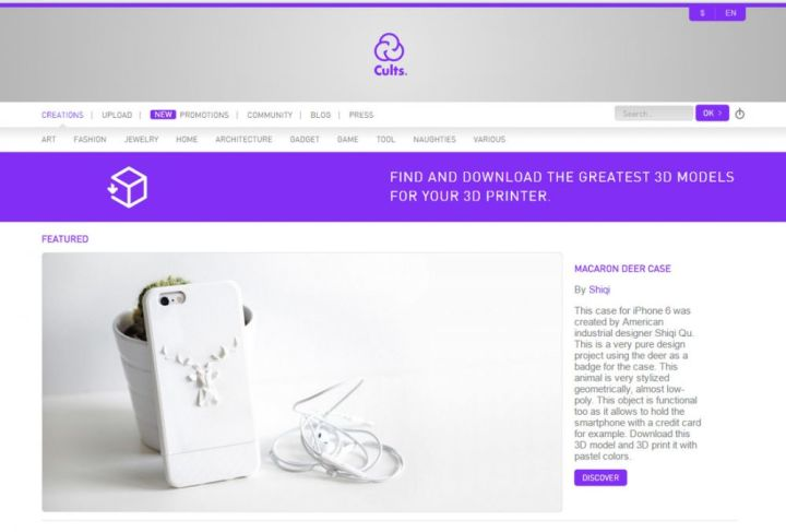 Cults 有免費及付費的3d模型下載。它是一個法國的網站,他們的賣點是所有3d模型的設計都非常漂亮,很多都由專業(yè)設計師設計。這網站設有英文語言,所以不用擔心看不懂。