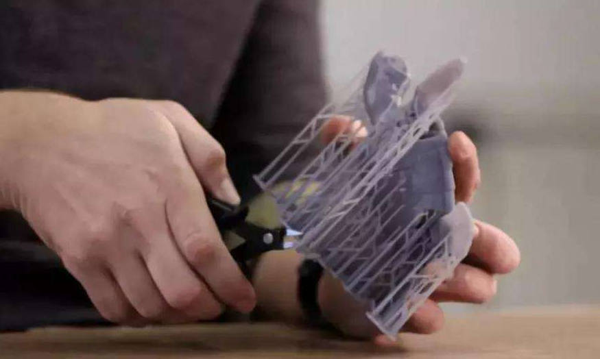 在打印過程中,為了保證物體的穩定性,可能會添加一些支撐結構。這些結構在打印完成后需要被去除,以獲得更加光滑的表面。可以先用酒精浸泡15分鐘,讓模型表面多余的樹脂化解,支撐軟化后使用剪刀、剪鉗或者是砂紙等工具來去除這些支撐結構。
