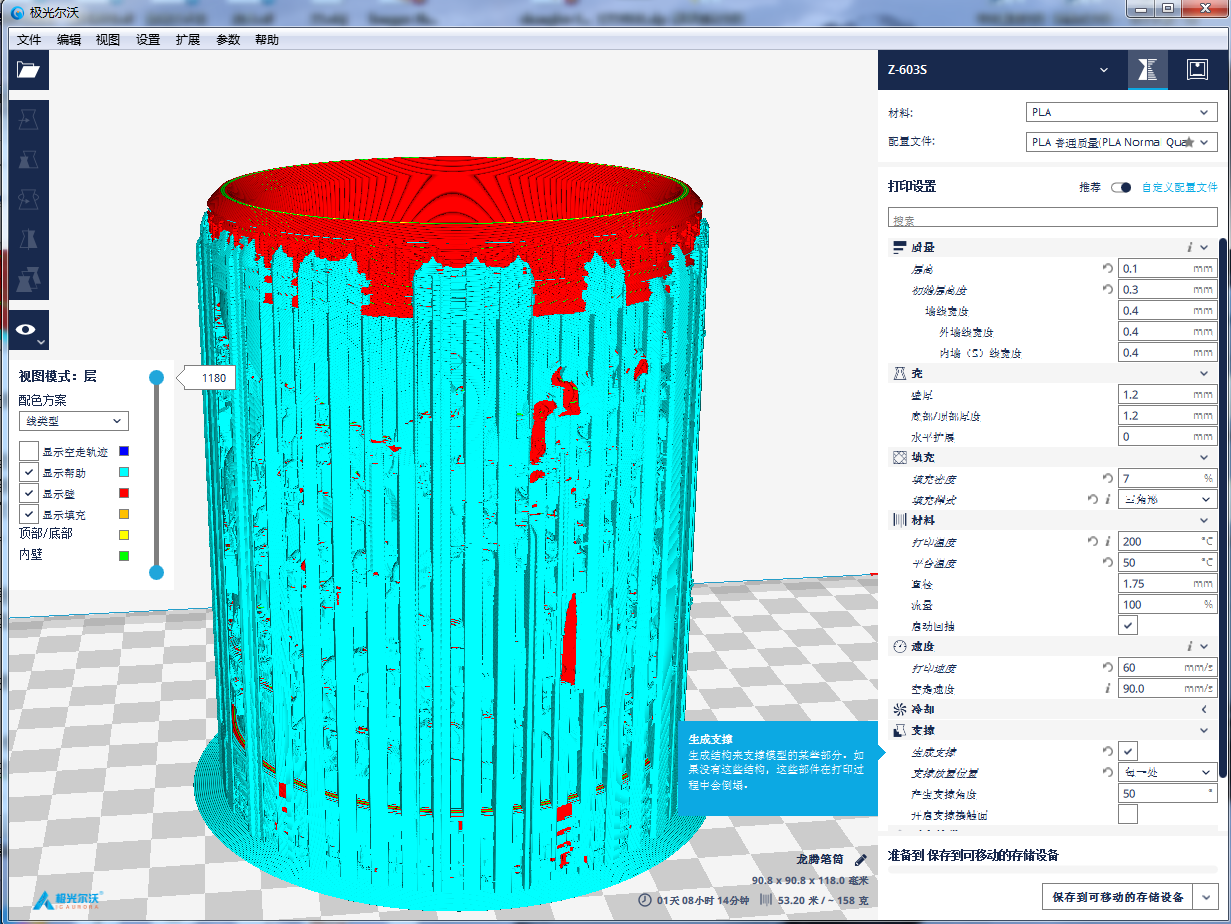 切片軟件一般是支持手動(dòng)增加支撐和自動(dòng)添加支撐的。自動(dòng)添加支撐,系統(tǒng)會(huì)根據(jù)您所要打印的模型自動(dòng)判斷在某些部位添加支撐物。