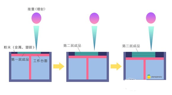 SLS打印技術采用鋪粉將一層粉末材料平鋪在已成型零件的上表面,并加熱至恰好低于該粉末燒結點的某一溫度,控制系統控制激光束按照該層的截面輪廓在粉層上掃描,使粉末的溫度升到熔化點,進行燒結并與下面已成型的部分實現粘結。一層完成后,工作臺下降一層厚度,鋪料輥在上面鋪上一層均勻密實粉末,進行新一層截面的燒結,直至完成整個模型。