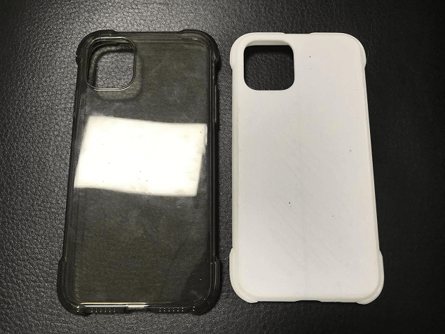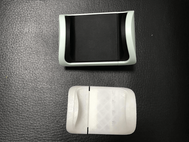 3D打印手機(jī)殼白模展示,對比實物圖,可以看得出來,大小尺寸經(jīng)過研發(fā)工程師的修改,更合適配套新款手機(jī)尺寸。